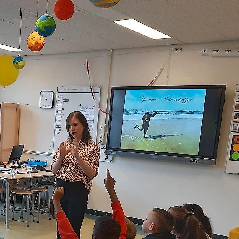 In samenwerking met de UvA verzorgt Yvonne gastlessen over natuurkunde en sterrenkunde op basisschool Al Jawhara. Hiervoor maken zij gebruik van de belevingswereld van de kinderen en geven zij lezingen en doen ze proefjes tijdens de lessen.